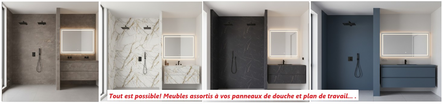 et toutes les autres dimensions fabriquées sur mesure au millimètre pour s'adapter à votre salle de bain.