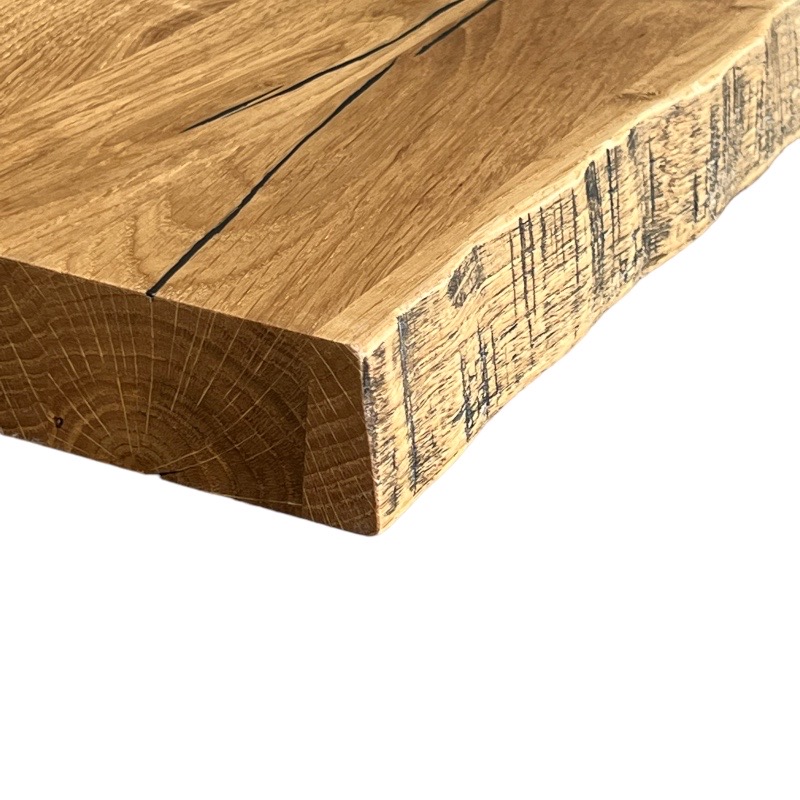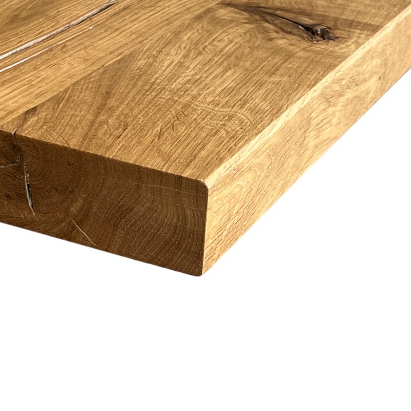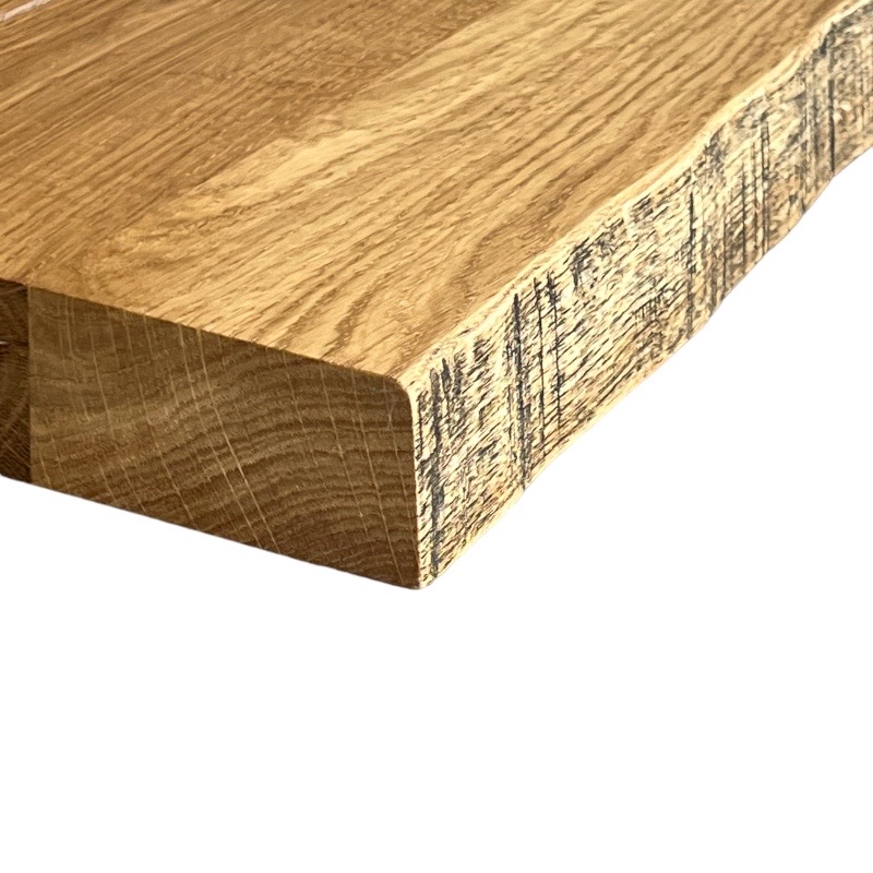 Le chant de votre plan de travail en bois massif peuvent être: vif, droit adouci, chanfreiné, écorce naturelle ou encore écorce noircie.