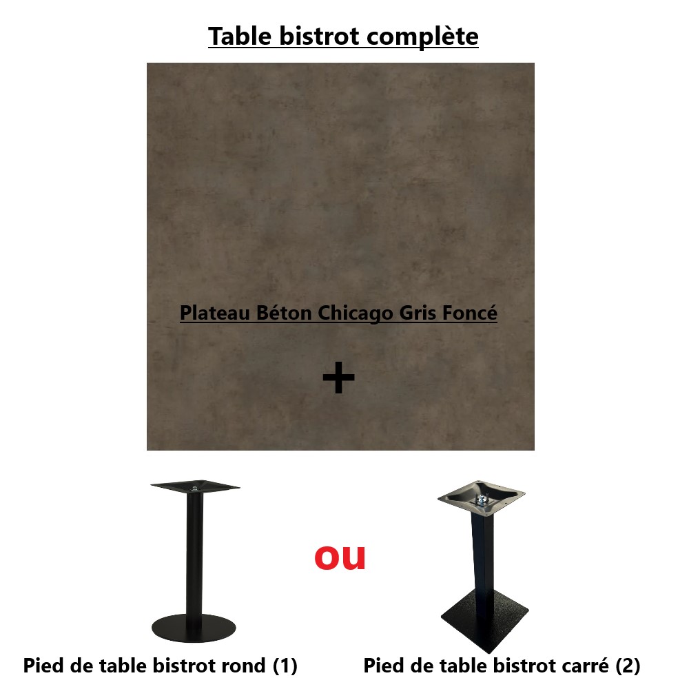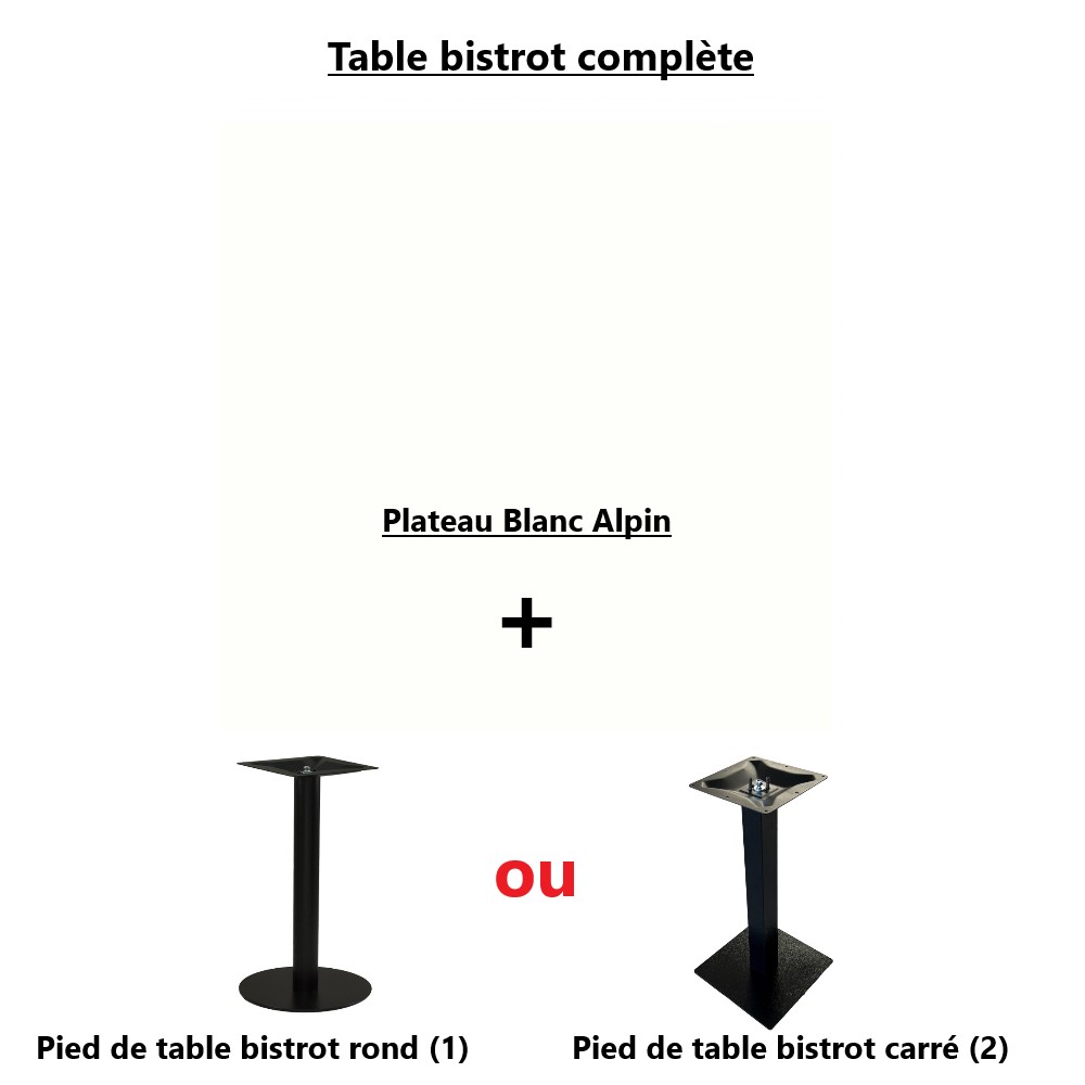 Acheter votre table bistrot, table de brasserie ou table de restaurant carré rectangulaire ou ronde en ligne au meilleur prix! Composez votre table bistrot avec nos modèles de pieds de table bistrot et plateau de table mélaminé, stratifié HPL ou Compact.