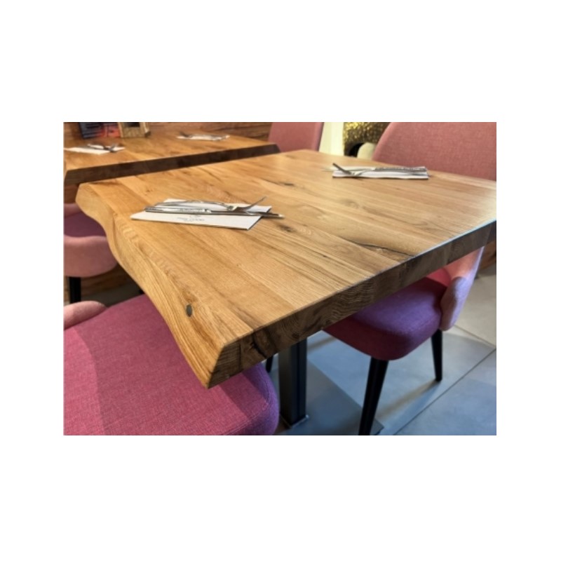 Nos plateaux chêne massif CHR pour table bistrot, restaurant, café, brasserie et hôtel, sont en stock et disponibles en 60x60cm, 70x60cm, 70x70cm, et 115x70cm. Une fabrication est possible sur mesure!